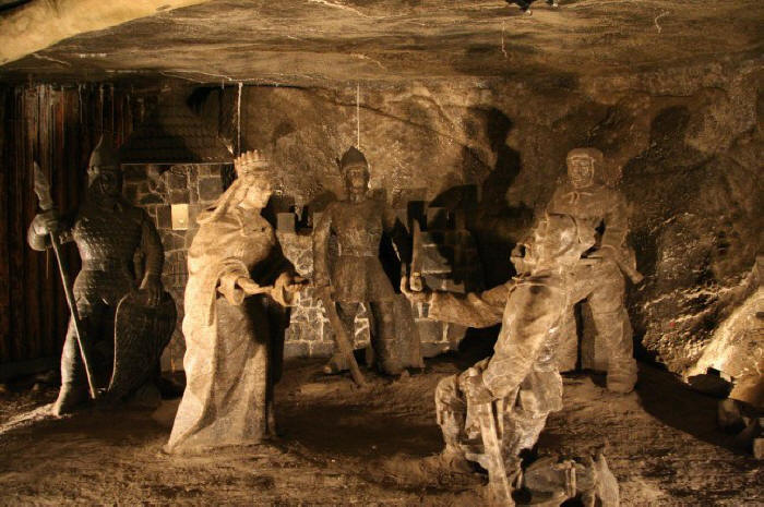 лабірынтаў. Вы будзеце зачараваныя падземнай атмасферай, якую ствараюць высечаныя ў солі алтары, скульптуры і барэльефы, саляныя азёры і капліца Сьв. Кінгі з вялізнымі салянымі люстрамі.